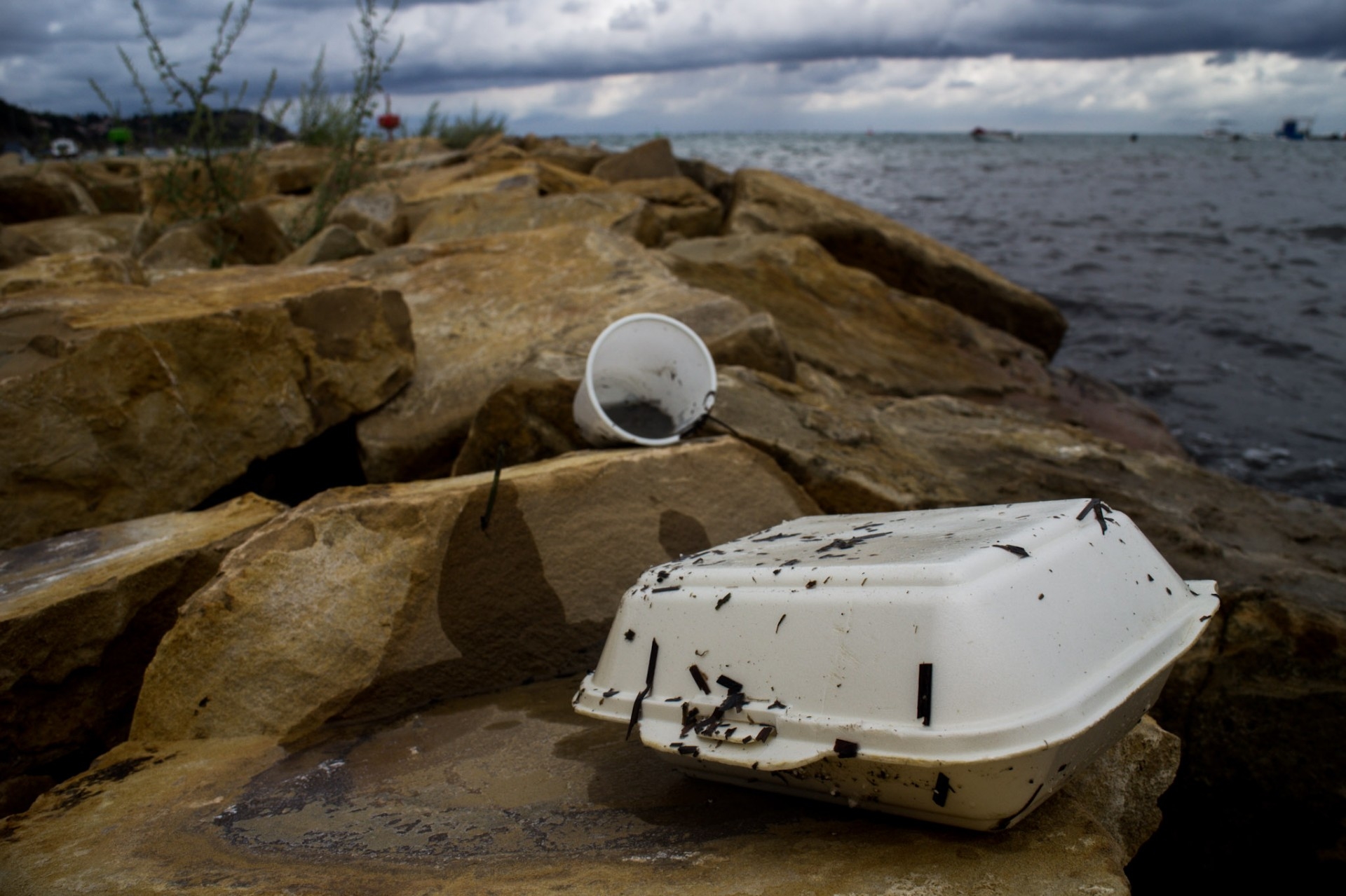 plastike, koščki stekla in keramike, embalaža za hrano, koščki stiroporja, plastične