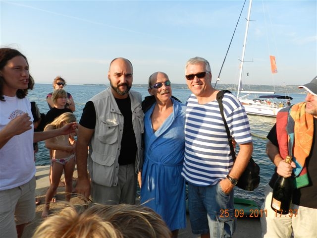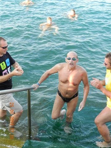 Gospodu Slaparju sta se pri plavanju pridružila tudi direktor Talasa Strunjan Miran Gaspari in direktor Krajinskega parka Marko Starman, ki sta preplavala del od Strunjana do Belvederja.