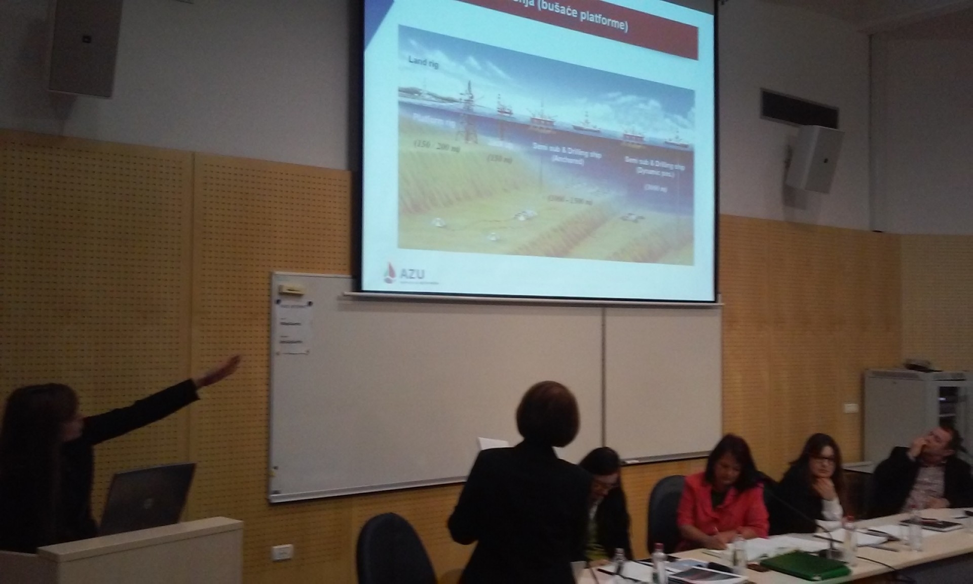 Barbara Dorić s hrvaške agencije za ogljikovodike je povedala, da tovrstne raziskave za nafto in plin na Hrvaškem potekajo že 60 let. Do leta 2013 je padla proizvodnja teh surovin za 30 – 35 %, saj ni bilo investicijskih vlaganj. Sedaj je ugotovljen neizkoriščen potencial, zato so se odločili za nova vlaganja v črpanje nafte in plina. Leta 2013 so sprejeli Zakon o raziskovanju in izkoriščanju ogljikovodikov, ki je skladen z EU direktivami in v okviru katerega so predvideli po gabaritih manjša raziskovalna področja, ki bodo dlje od obale in otokov. Od 29 polj so jih do sedaj oddali 10, in sicer na območju srednjega in južnega Jadrana. Obdobje raziskav bo potekalo 5 let in obdobje izkoriščanja 25 let. Ploščadi so lahko, odvisno od globine morja, fiksne ali pol-plavajoče. Po namenu uporabe pa vrtalne, eksploatacijske in kompresorske.