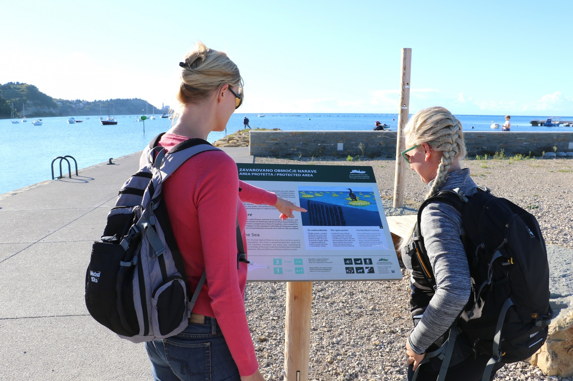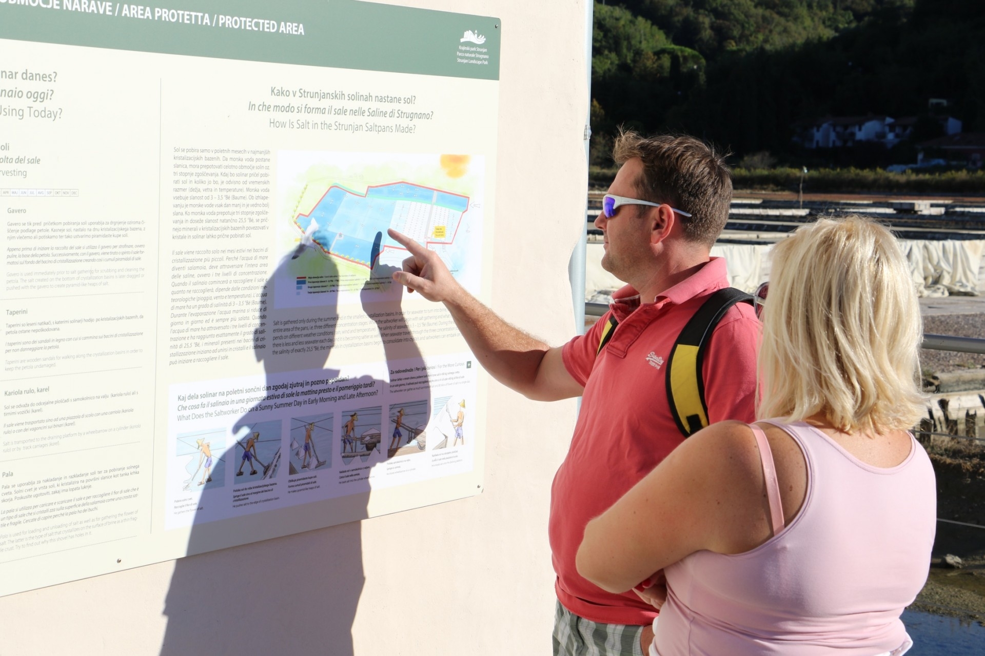 Poleg pojasnjevalnih tabel je pot opremljena s kukali za usmerjen pogled na okoliške geografske lege mest, učnimi sredstvi, ki spodbujajo interaktivnost predstavitve, predvsem z igrami v sklopu »Za radovedneže« in pripomočki za prepoznavanje rastlin, živali, ihnofosilov idr. Na pojasnjevalnih tablah so namesto fotografij uporabljene ilustracije, ki zelo nazorno predstavljajo izbrano tematiko, ki je mnogokrat skrita očem obiskovalca (npr. življenje v morju, ptice v solinah, organizmi v laguni na in pod morsko gladino ter na in pod morskim dnom, idr.). Na vsaki tabli je dodana QR koda, s katero se poveže na spletno stran z dodatnimi informacijami. V kratkem si bo pot mogoče ogledati tudi z mobilno aplikacijo Nexto, ki omogoča avdio vodenje.