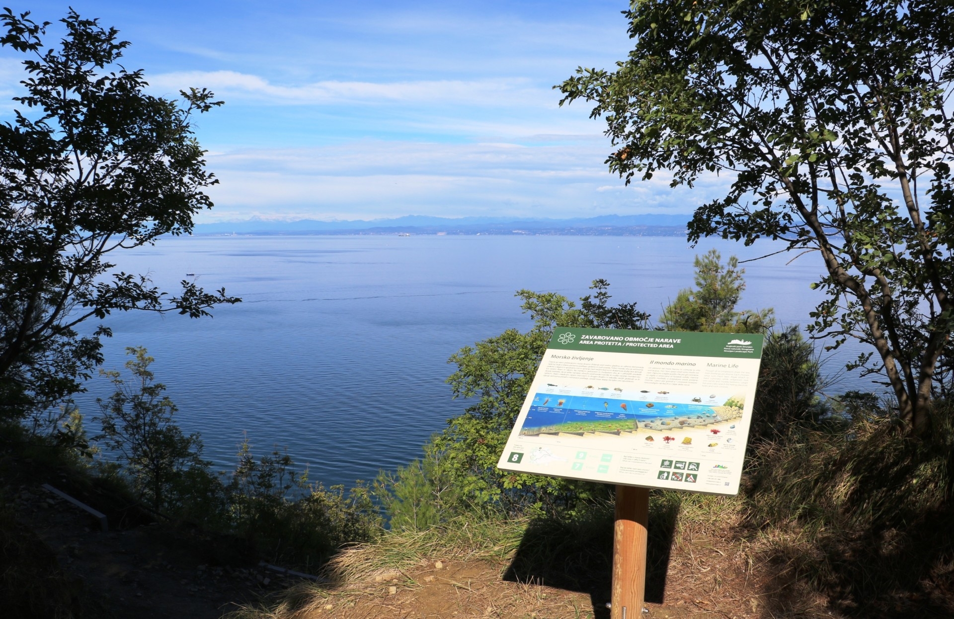 Slikovita pot razkriva vse morske skrivnosti, ki jih obiskovalci lahko spoznajo na tem edinstvenem še ohranjenem delu slovenske obale. Na poti so predstavljene vse glavne naravne in kulturne znamenitosti območja, ki so tako kot velja za celoten park, neposredno povezane z morjem. Glavna tematika so podobe morja v Strunjanu, ki so na poti predstavljene skozi informativne table z naslovi: darovi morja, v laguno ujeto morje, soline – ščepec morja, primorske terase, gozd do morja, klif – živa skulptura morja, morsko življenje, moč valov, vrt na klifu in krajina s pridihom morja. Na izjemnih razglednih točkah, ki jih pot ponuja, seže pogled vse od Tržaškega zaliva do Julijskih Alp.