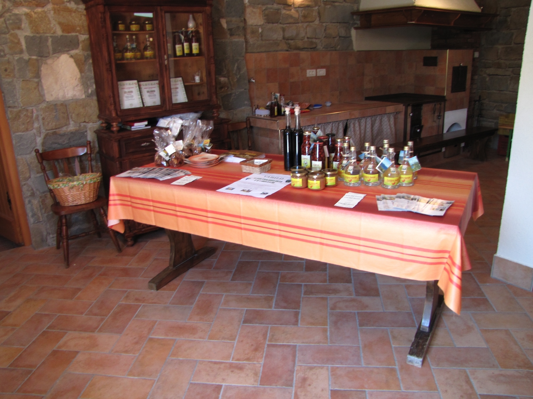 Hlajenje - v kleti. Pokušina olja, peciva z melonami, bučnega likerja, vloženih oljk. Kmetija Giassi Mario