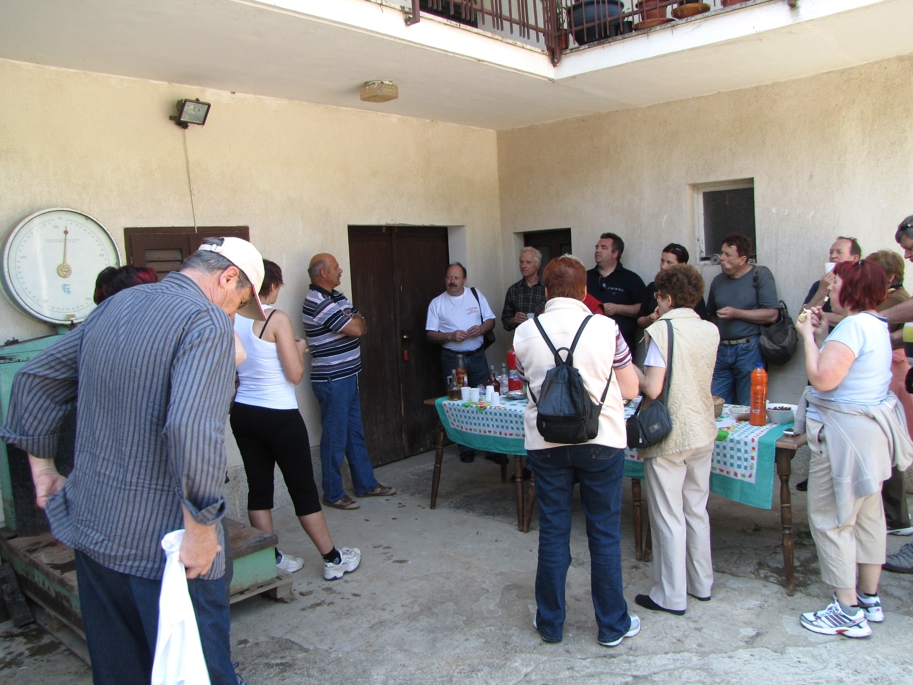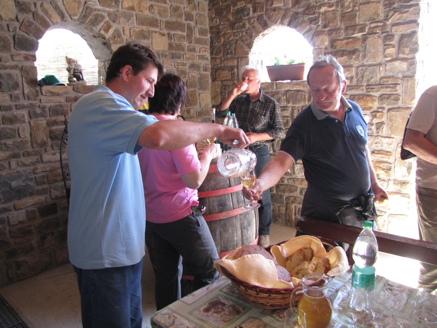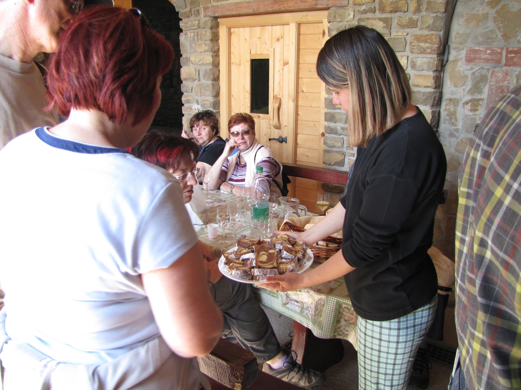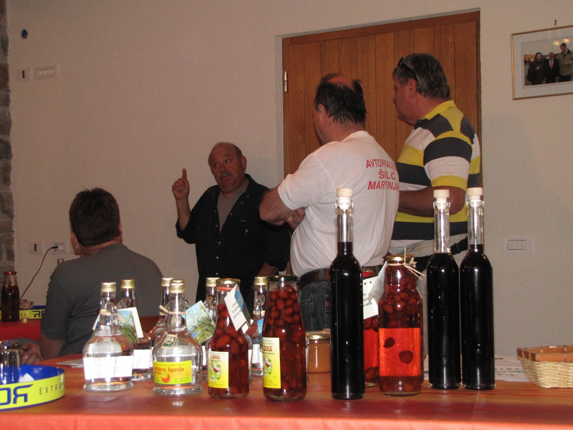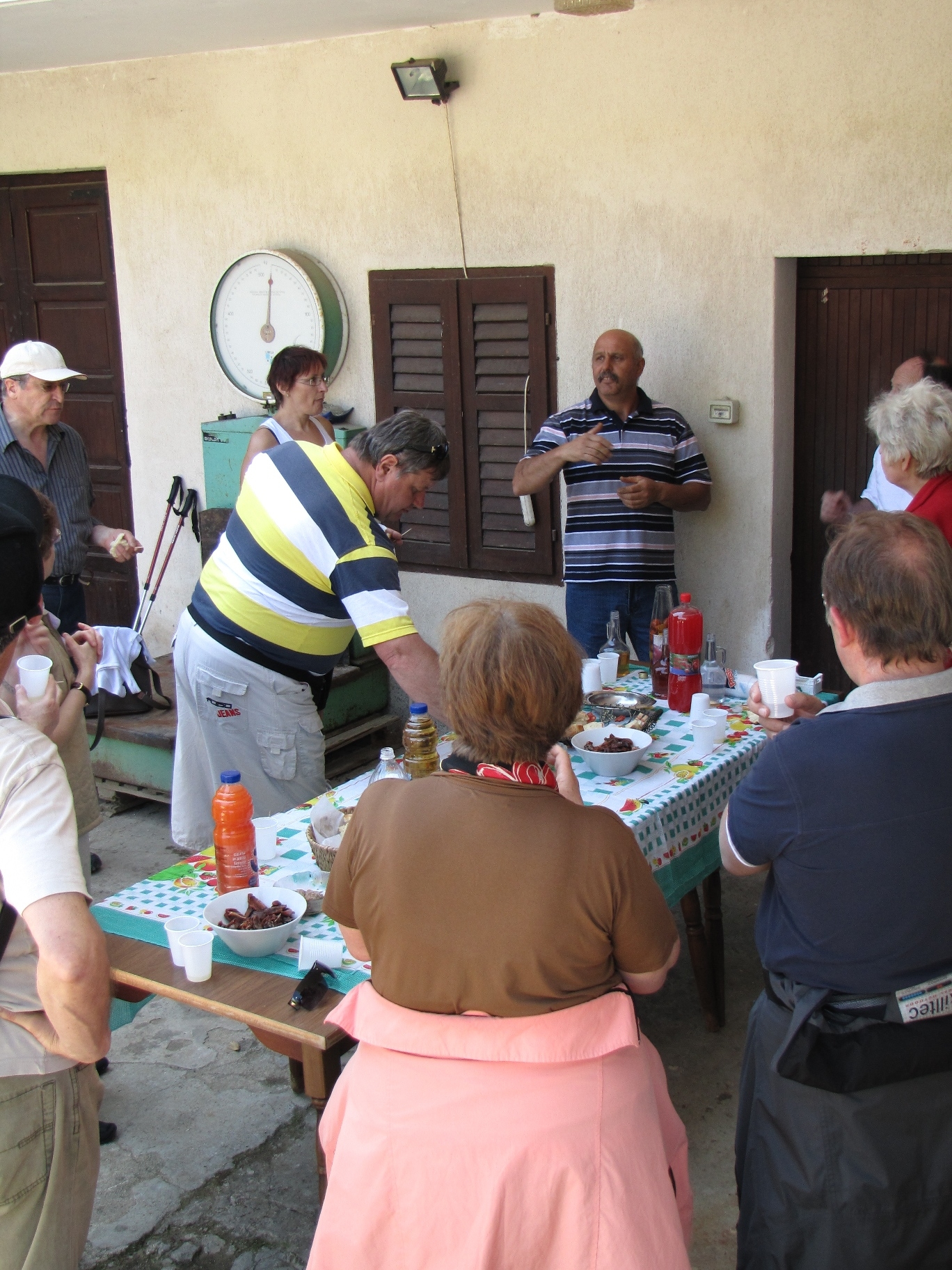 Prihod k drugi kmetji. - Pogostitev z žižolami v žganju, sveže pečenim kruhom in še z drugimi dobrotami. Kmetija Knez Silvano.