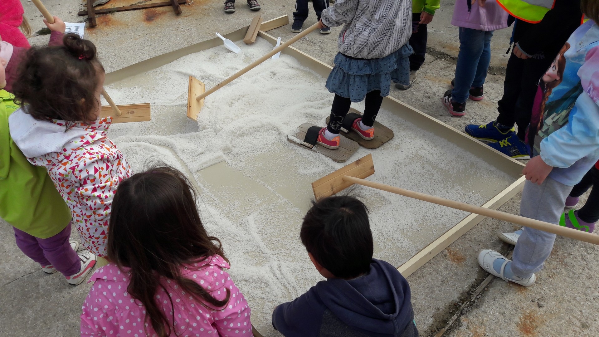 Teden kasneje nas je vrtec obiskal še na solinah in postavili smo rekord v najbolj zgodnjemu pobiranju soli. Za otroke smo namreč pripravili imitacijo bazena in solinarskega orodja, da so se tako spoznali z delom solinarja in pobrano sol odnesli domov. Obenem pa smo jim še razložili, da na tem območju rastejo posebne rastline, slanuše, ki ne bi uspevale v zemlji, kjer rastejo rože, ki jih imajo doma.