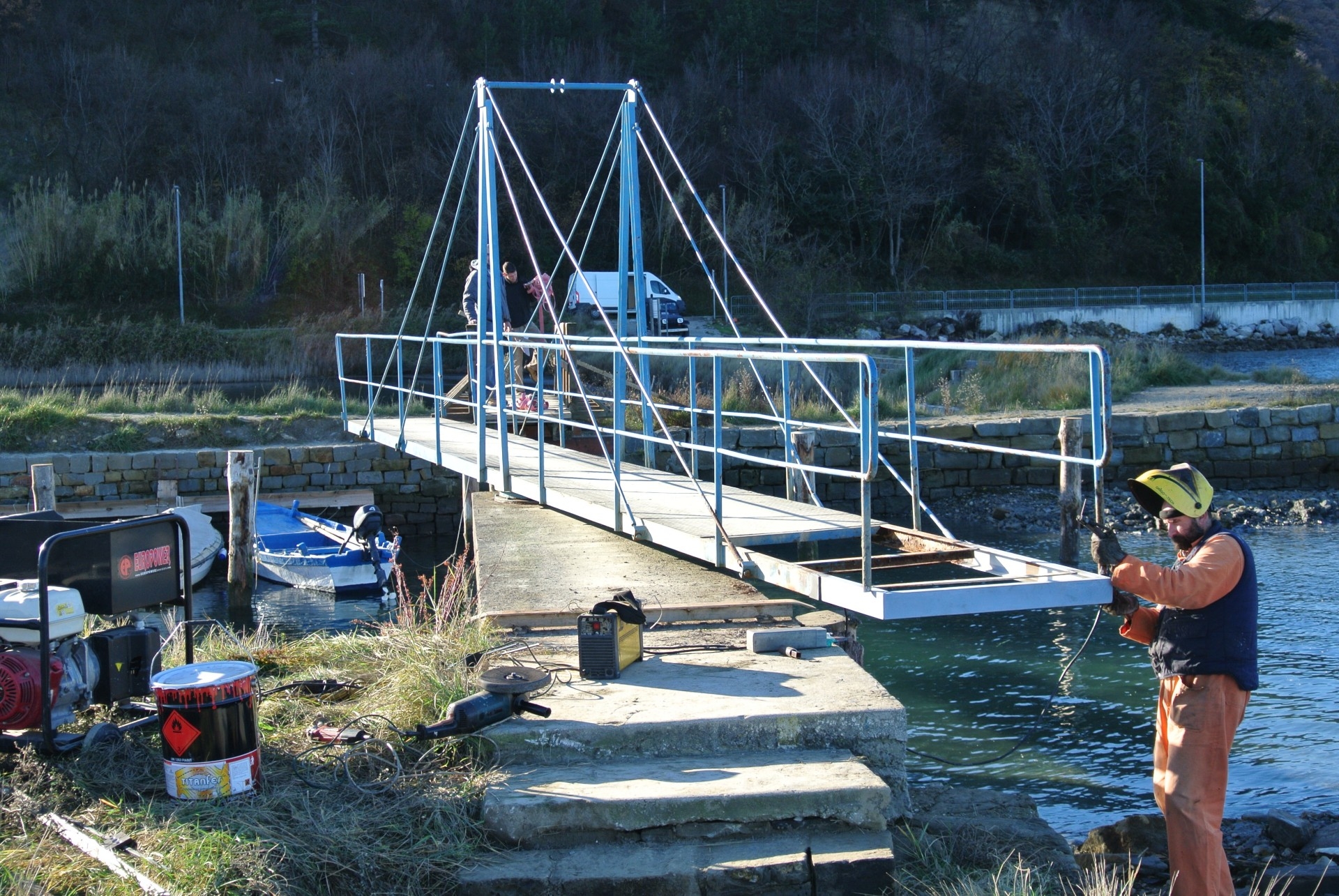 Prejšnji teden smo pričeli z deli na mostu čez potok Roja. Ta stoji na priljubljeni sprehajali poti, ki poteka po čelnem nasipu Strunjanskih solin. Po vzdrževalnih delih na nosilnih stebrih, ki smo jih opravili pred letom dni, smo se letos lotili obnove zgornjega dela mostu. Železni del vrtljivega mostu bo popravljen in prebarvan, leseni del pa popolnoma prenovljen.
