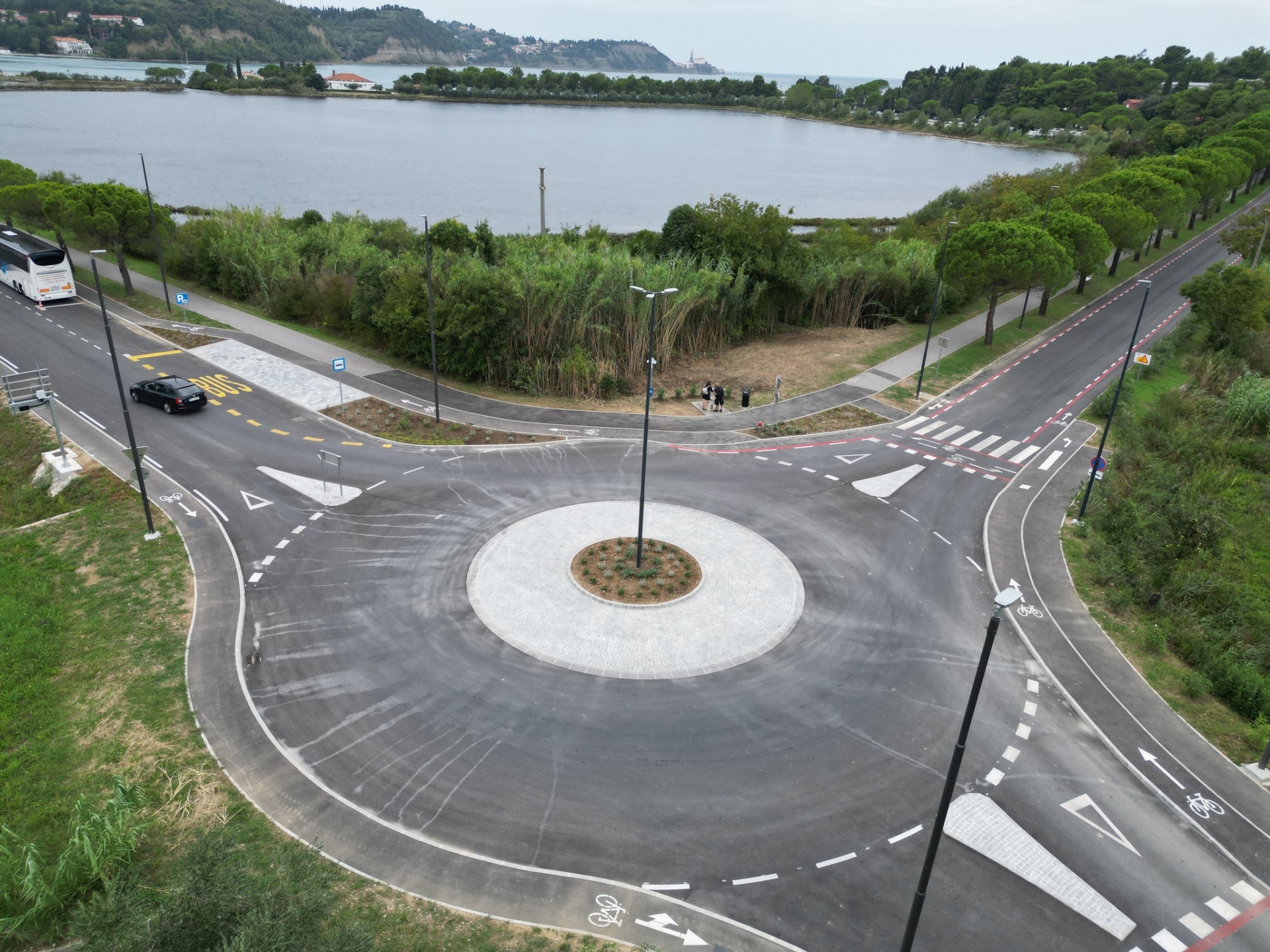 V okviru celovite ureditve lokalne ceste ob Stjuži, se je zgradilo tudi novo krožno križišče na trikrakem križišču Ronek/Borgola, poskrbelo za sanacijo voziščne konstrukcije, zarisalo kolesarska pasova v obeh smereh vožnje, uredilo novo avtobusno postajališče ter postavilo protikoreninske zaporne plošče in informativne LED table, ki voznike obveščajo o zasedenosti tamkajšnjega parkirišča. Za naložbo je Občina Piran odštela 576.740,36 evra z DDV, pri čemer je 103.000 evrov prispeval Krajinski park Strunjan.