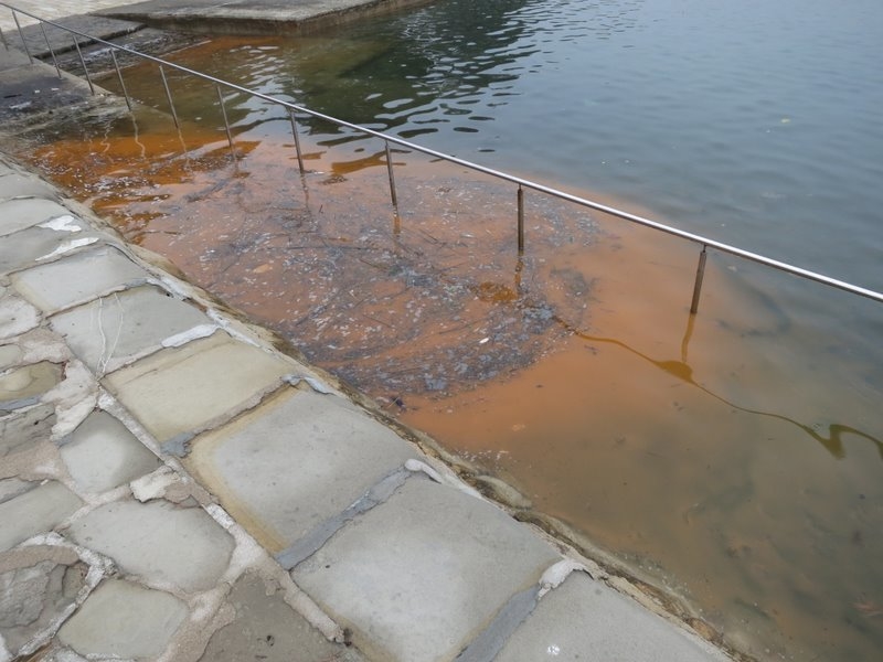 To jutro se je kar nekaj obiskovalcev parka na njegovi zahodni obali spraševalo kaj se dogaja z morjem, saj so na njegovi površini opazili večje oranžne zaplate.
