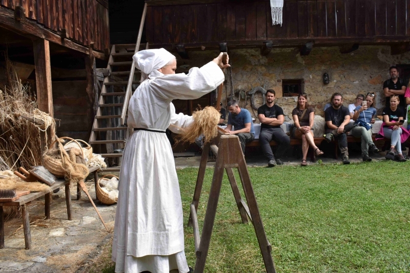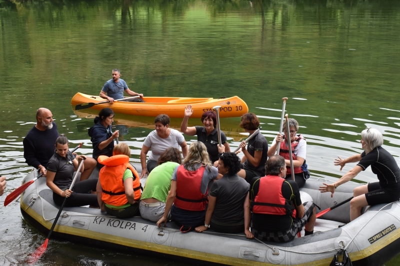 V Škočevem dvoru, kjer je tudi sedež parka, so nas sprejeli direktor Boris Grabrijan, Tončka Jankovič in Anita Golobič Prosenjak. Seznanili so nas z dediščino pridelave in predelave lanu ter ovčje volne, vse v belokranjskem narečju, kar je predstavitev naredilo še bolj doživeto. Po ogledu notranjosti domačije, smo se s kanuji in raftom odpravili na dogodivščino po reki Kolpi, ki nas je s svojo spokojnostjo vse očarala.