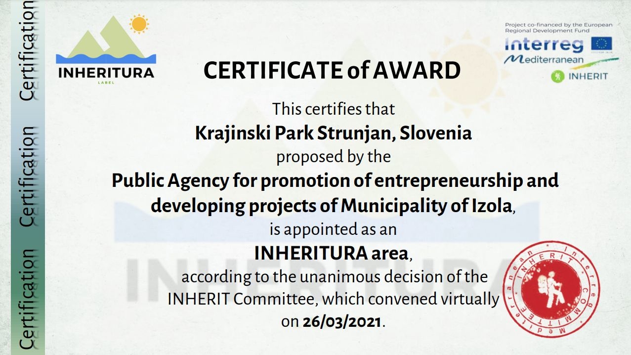 Po obdobju testiranja in izpolnjevanju prijavnice je KP Strunjan je uspelo doseči kriterije, da se mu je dodelilo certifikat INHERTURA kot prvemu v Sloveniji.